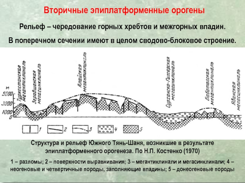 Тянь-Шаня, возникшие в результате эпиплатформенного орогенеза. По Н.П. Костенко (1970)