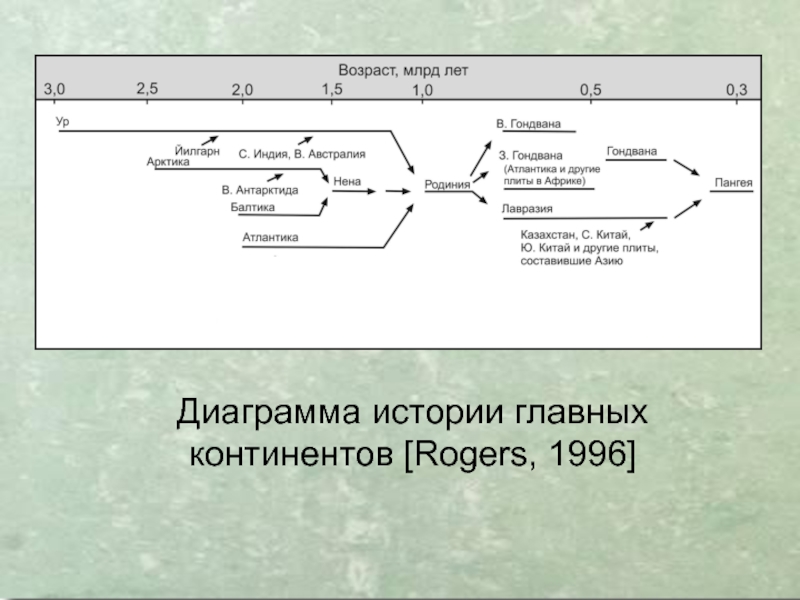 Слайд 17Диаграмма истории главных континентов [Rogers, 1996]