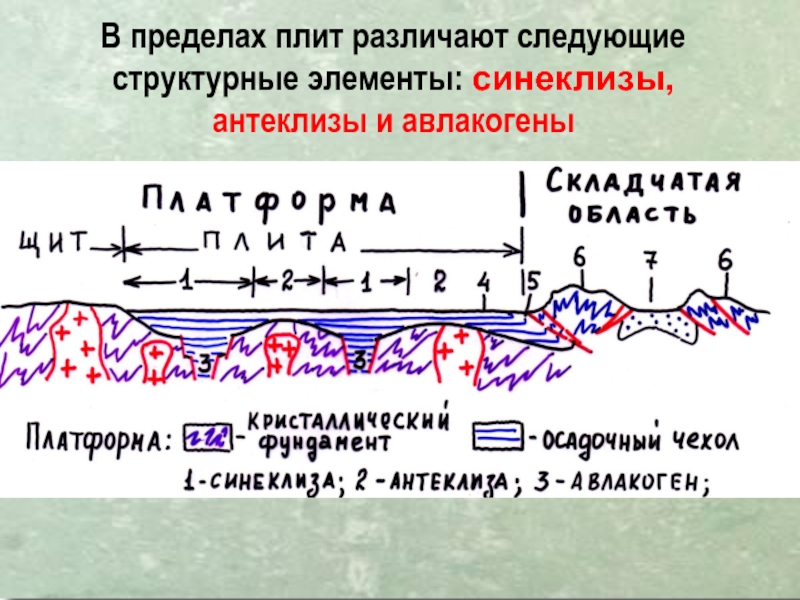 Слайд 78Плиты – преобладающий элемент строения древних и особенно молодых платформ,