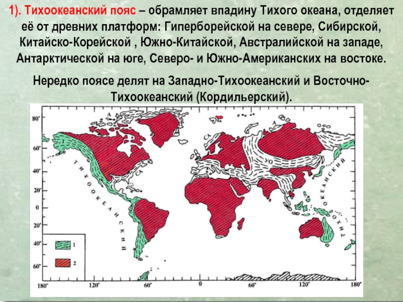 Слайд 111). Тихоокеанский пояс – обрамляет впадину Тихого океана, отделяет её