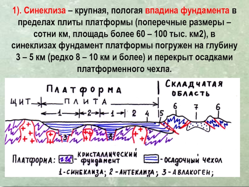 Слайд 801). Синеклиза – крупная, пологая впадина фундамента в пределах плиты