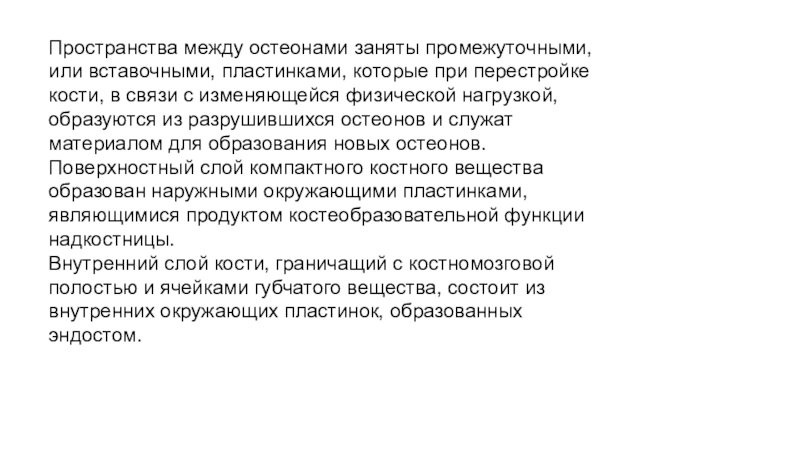 Слайд 63Пространства между остеонами заняты промежуточными, или вставочными, пластинками, которые при