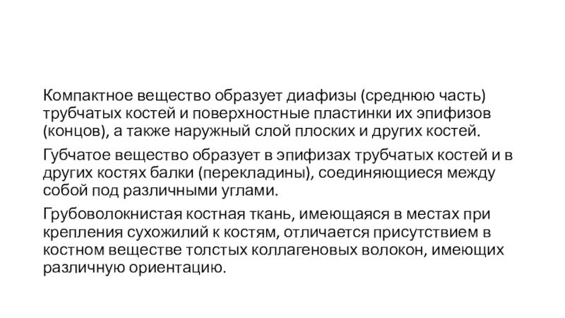 Слайд 6Компактное вещество образует диафизы (среднюю часть) трубчатых костей и поверхностные