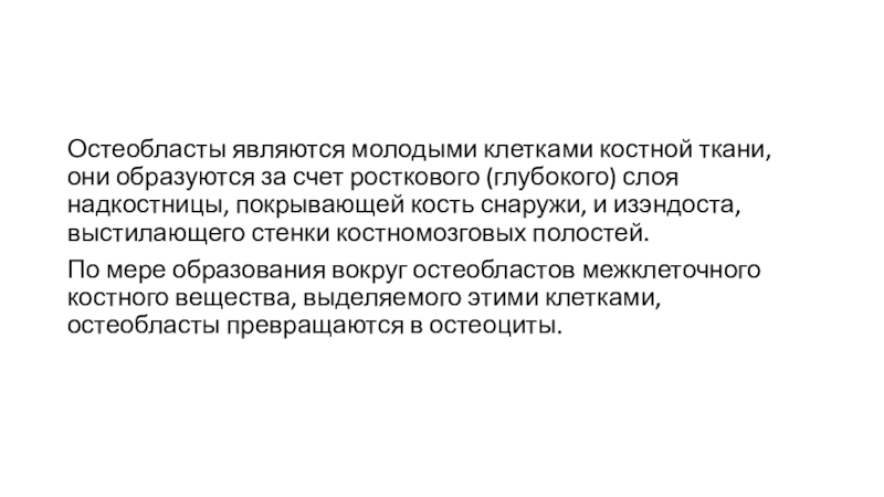 Слайд 12Остеобласты являются молодыми клетками костной ткани, они образуются за счет