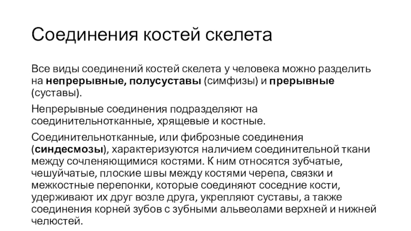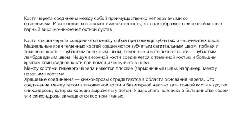 Слайд 44Кости черепа соединены между собой преимущественно непрерывными со