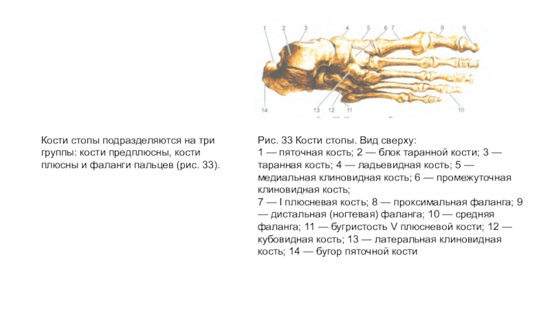 Слайд 53Рис. 33 Кости стопы. Вид сверху: