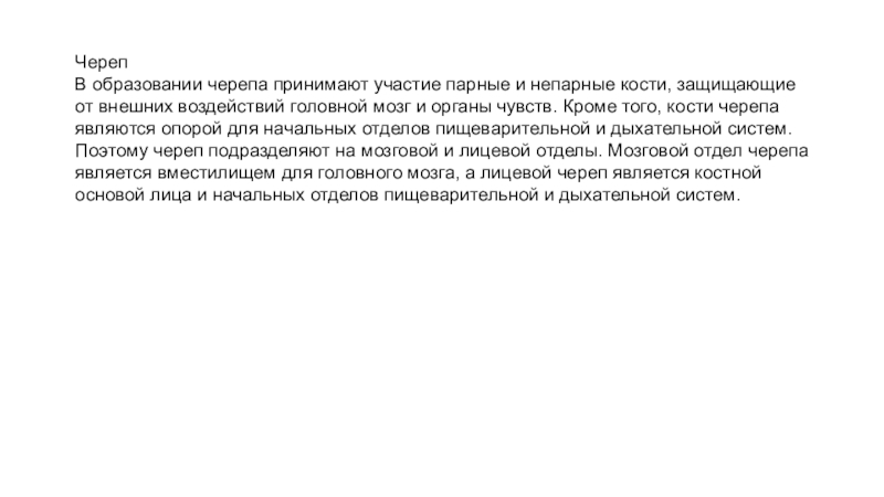 В образовании черепа принимают участие парные и непарные кости, защищающие