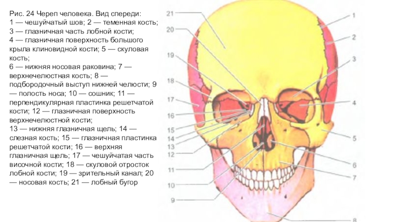 Слайд 42Рис. 24 Череп человека. Вид спереди: