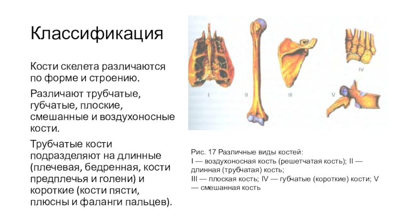 III — плоская кость; IV — губчатые (короткие) кости; V — смешанная кость