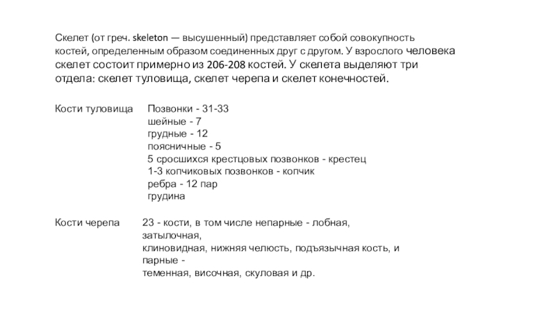 Слайд 13Скелет (от греч. skeleton — высушенный) представляет собой совокупность