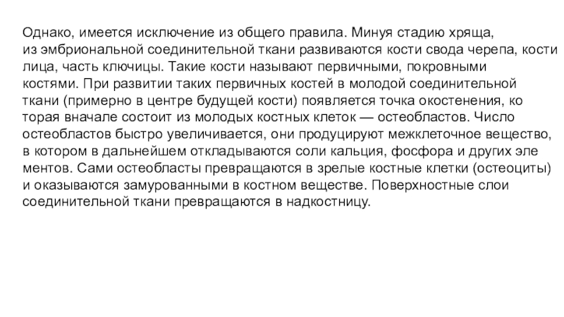 Слайд 16Однако, имеется исключение из общего правила. Минуя стадию хряща,