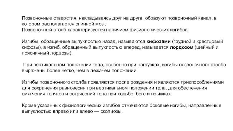 Кроме указанных физиологических изгибов отмечаются боковые изгибы, направленные выпуклостью вправо или влево — сколиозы.