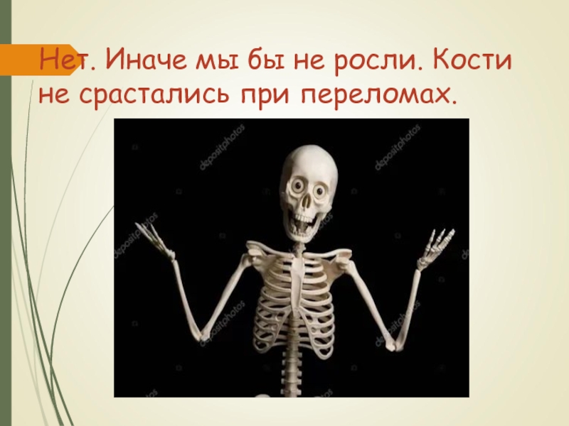 Слайд 26Нет. Иначе мы бы не росли. Кости не срастались при