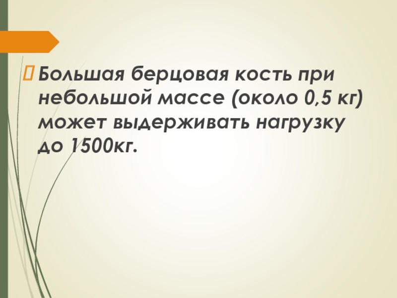Большая берцовая кость при небольшой массе (около 0,5 кг) может выдерживать нагрузку до 1500кг.