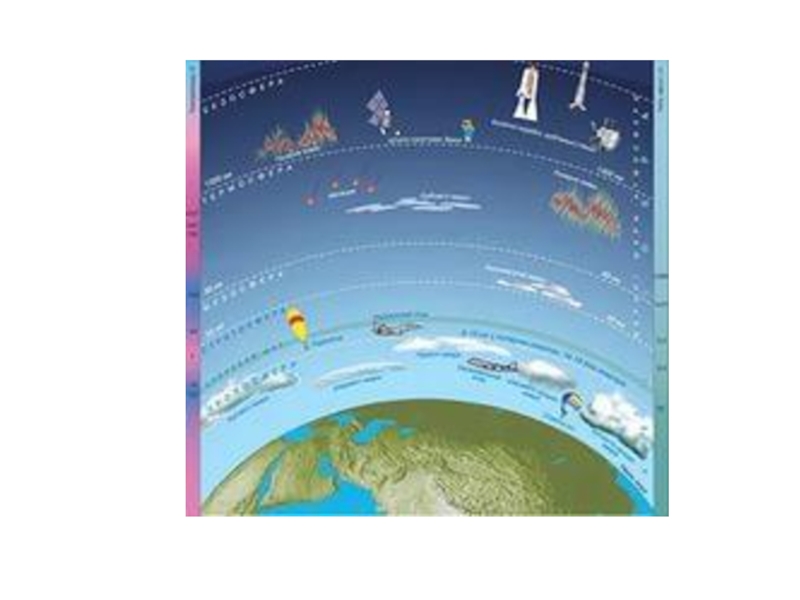 Слои атмосферы (половина воздуха сосредоточена на высотах ниже 6 км!):