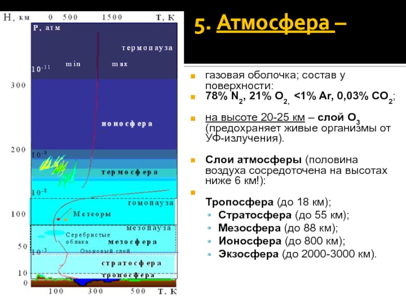 – слой О3 (предохраняет живые организмы от УФ-излучения).
