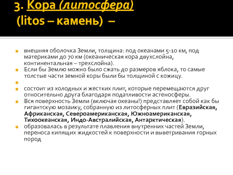 состоит из холодных и жестких плит, которые перемещаются друг относительно друга благодаря податливости астеносферы.