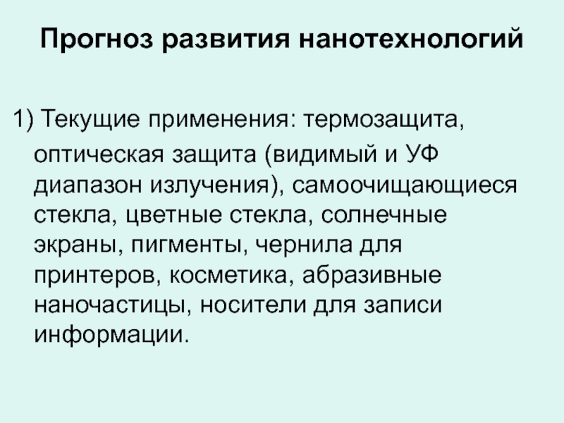 устройства контроля и обеззараживания объектов и окружающей среды, нанокатализаторы высокой производительности и селективности, использование нанотехнологии для