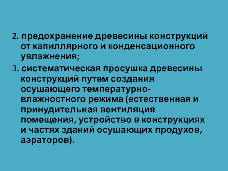 Слайд 352. предохранение древесины конструкций от капиллярного и конденсационного увлажнения;