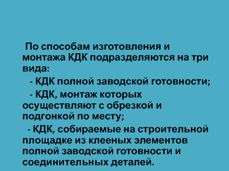 Слайд 14 По способам изготовления и монтажа КДК подразделяются