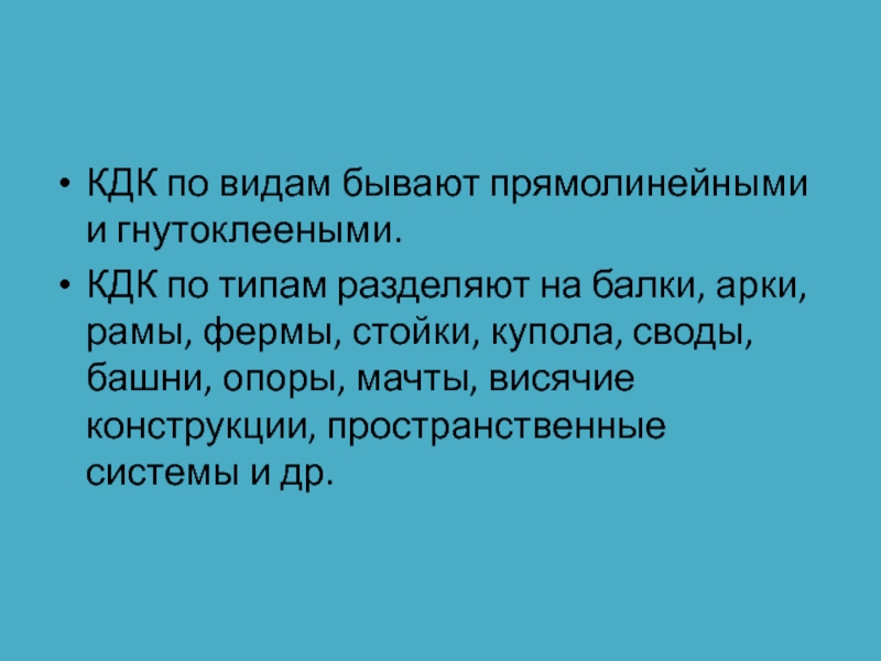 Слайд 2КДК по видам бывают прямолинейными и гнутоклееными.
