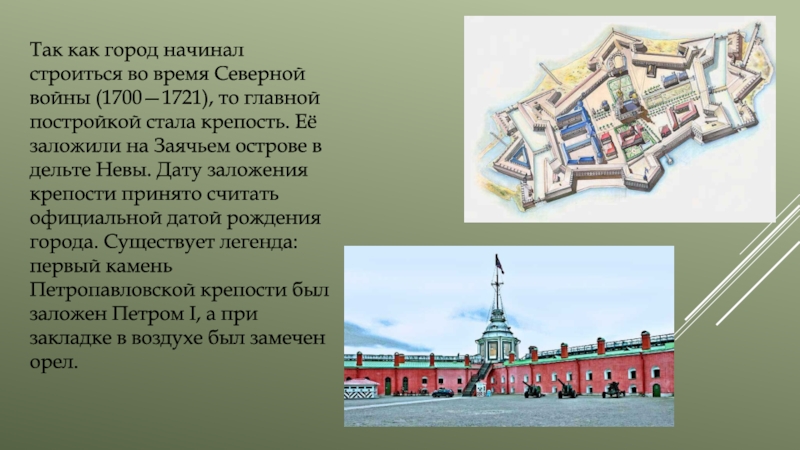 Слайд 4Так как город начинал строиться во время Северной войны (1700—1721),
