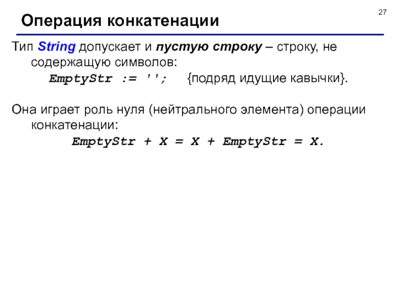 Слайд 11Пустая строка задается двумя последовательными апострофами: