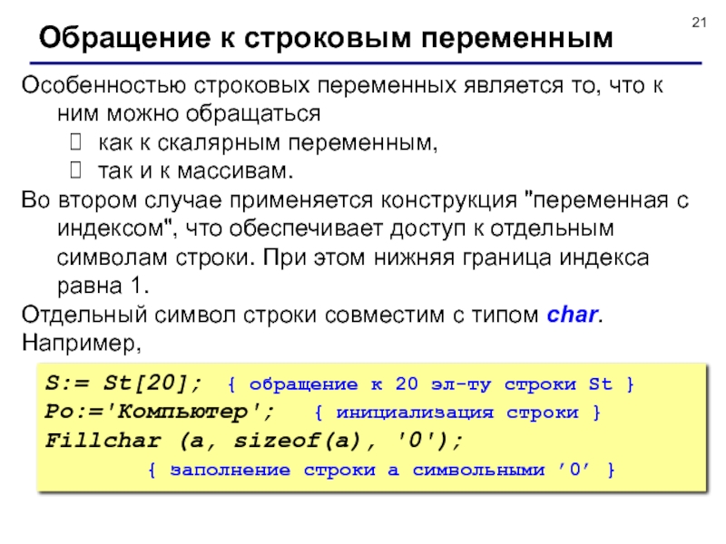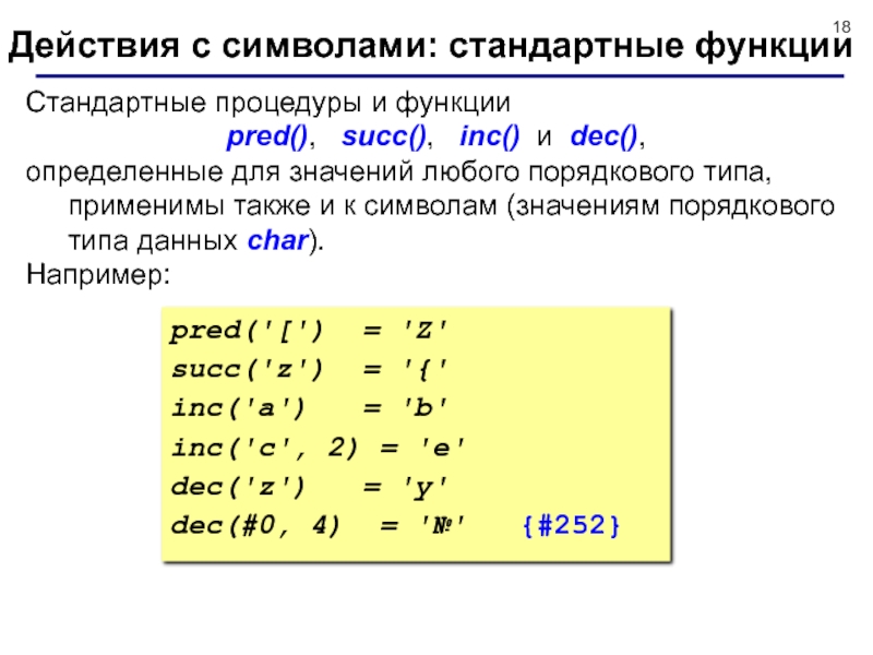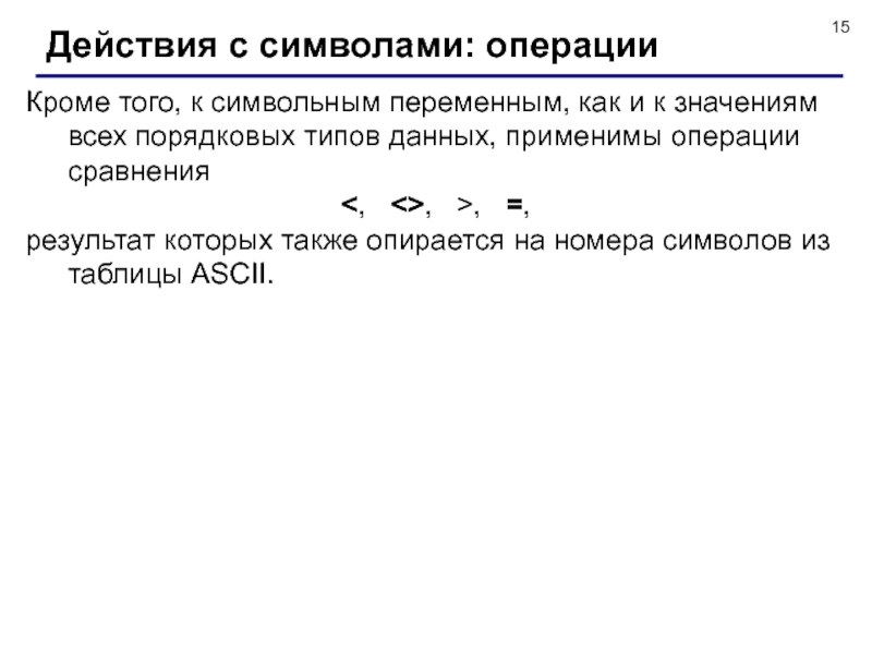 Слайд 15Кроме того, к символьным переменным, как и к значениям всех