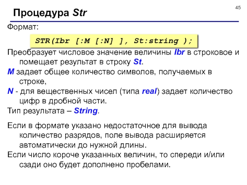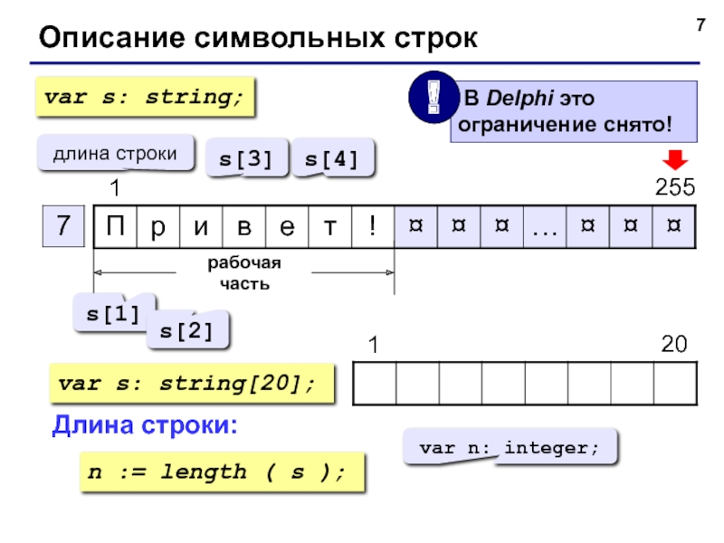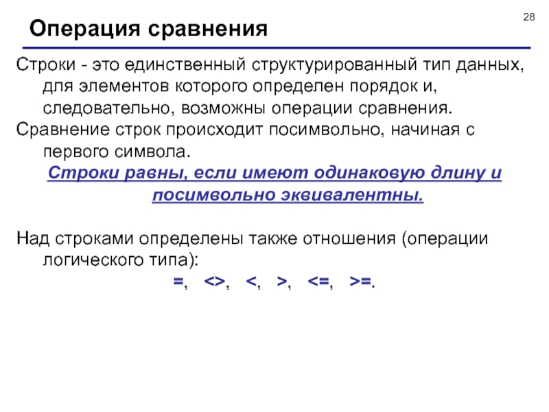 от своей реальной длины, строка относится к конструируемым структурированным типам данных, а не к базовым порядковым (см. Тему 2).