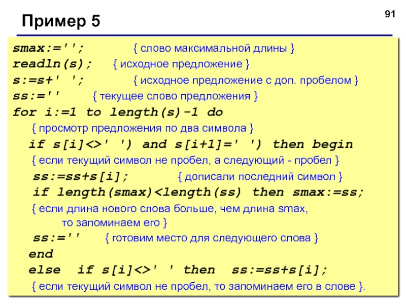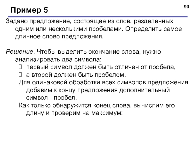 Слайд 90Задано предложение, состоящее из слов, разделенных одним или несколькими пробелами.