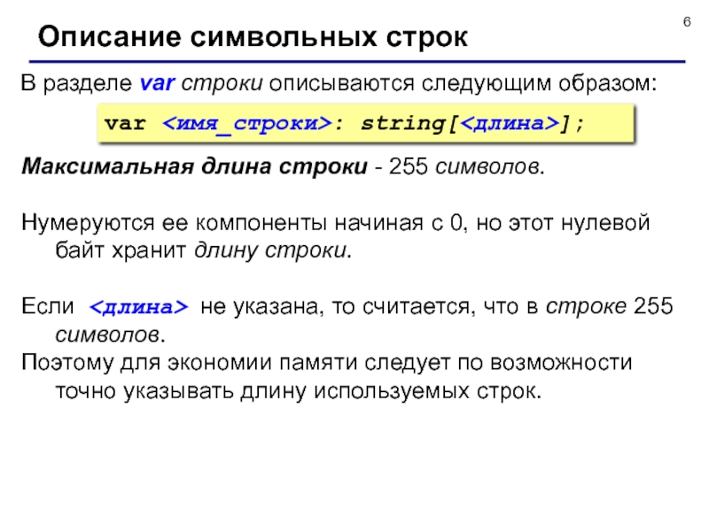 Поэтому для экономии памяти следует по возможности точно указывать длину используемых строк.