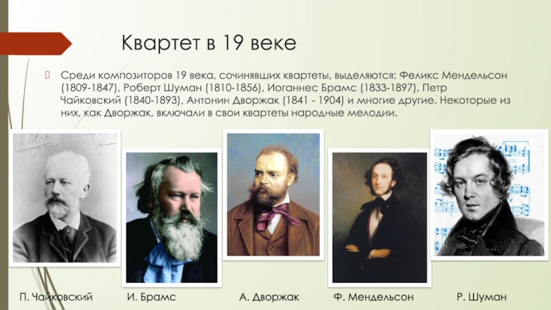 П. Чайковский И. Брамс А. Дворжак Ф. Мендельсон Р. Шуман