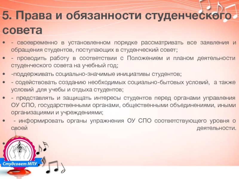 5.1. Студенческий совет имеет право: