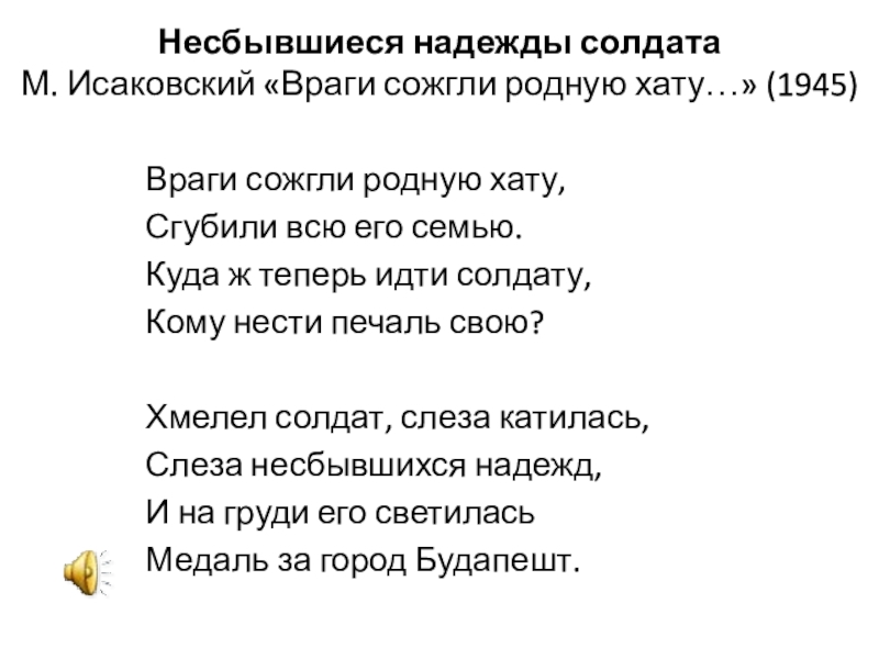 М. Исаковский «Враги сожгли родную хату…» (1945)