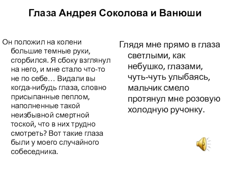 Слайд 10Глаза Андрея Соколова и Ванюши
