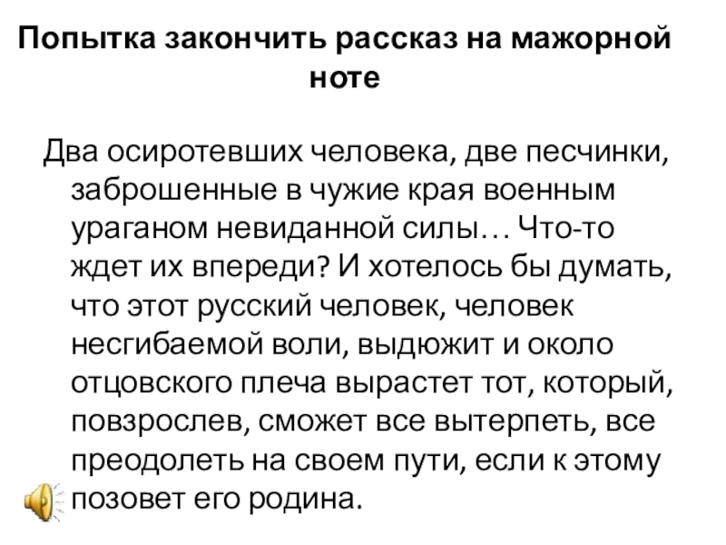 Слайд 17Попытка закончить рассказ на мажорной ноте
