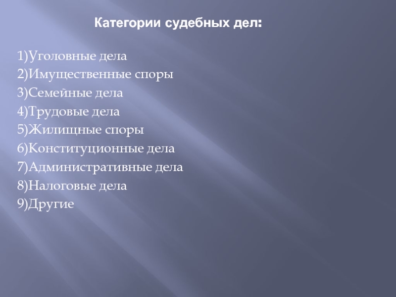 Слайд 6Категории судебных дел: