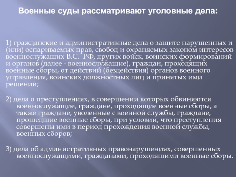 Слайд 21Военные суды рассматривают уголовные дела: