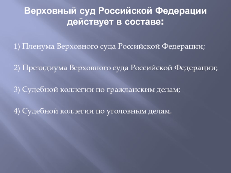 Слайд 11Верховный суд Российской Федерации действует в составе: