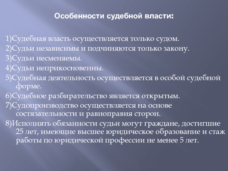 Слайд 23Особенности судебной власти: