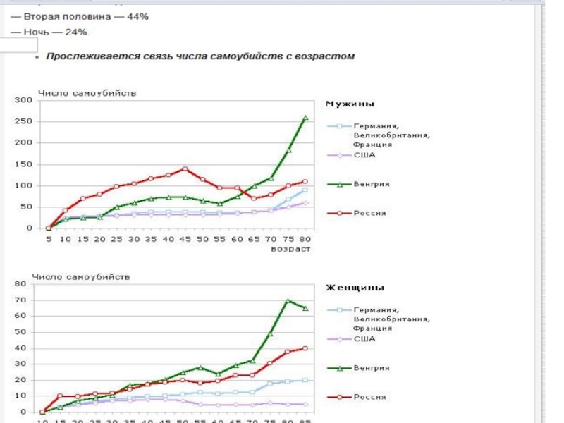 попытки реже заканчиваются смертельным исходом. Женщины чаще угрожают самоубийством, чем