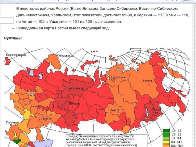 Слайд 11Суицидальная карта России имеет следующий вид: