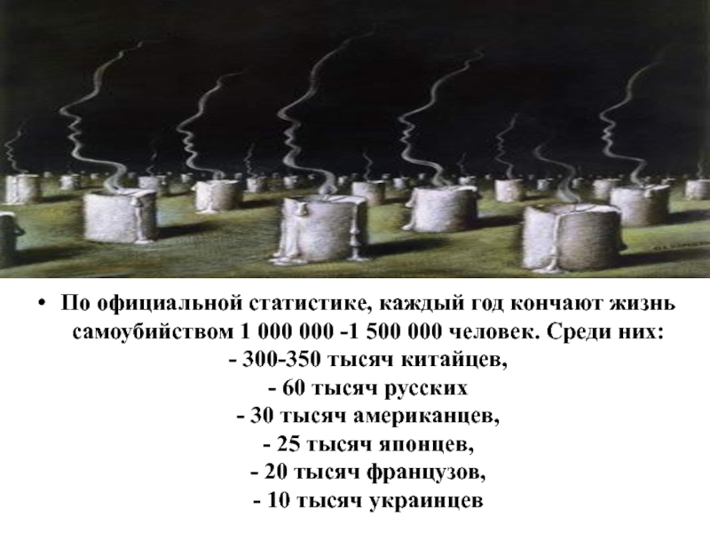 Слайд 6По официальной статистике, каждый год кончают жизнь самоубийством 1 000