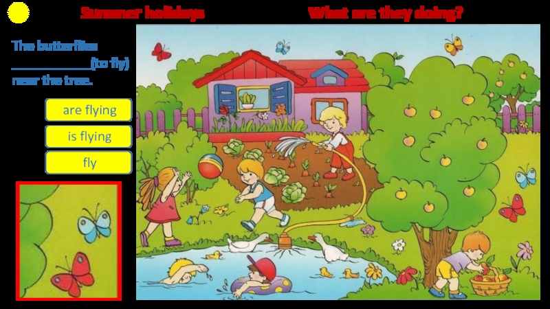 The butterflies___________(to fly) near the tree.are flyingis flyingfly