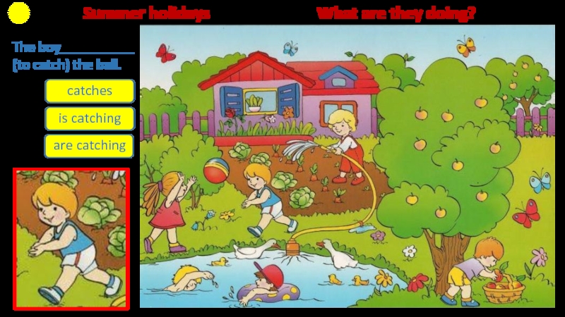 The boy__________ (to catch) the ball.is catchingare catchingcatches