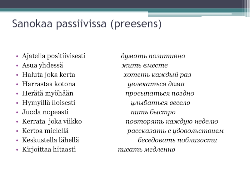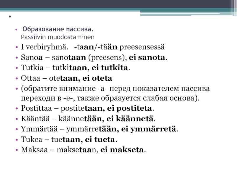 Слайд 15Tehtävä. Avaa sulkeet. Käytä passiivia.