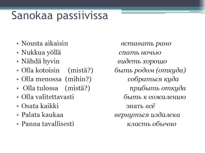tulla – tullaan – ei tulla – tultiin, (приходить)