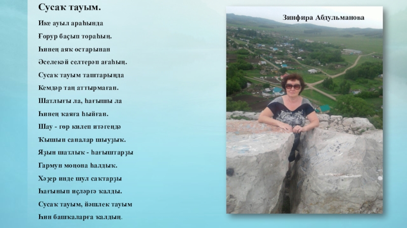 Слайд 2Сусактау – Крутая гора между селом Абзаново и деревней Ниязгулово.