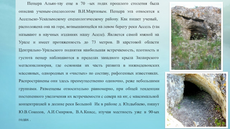 Слайд 17Пещера Альян-тау еще в 70 –ых годах прошлого столетия была