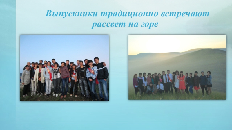 Слайд 8 Выпускники традиционно встречают рассвет на горе